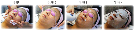 ![]() 1:クレンジング ⇒ 2:ジェルを塗ります ⇒ 3:フォト照射 ⇒ 4:冷却沈静パック